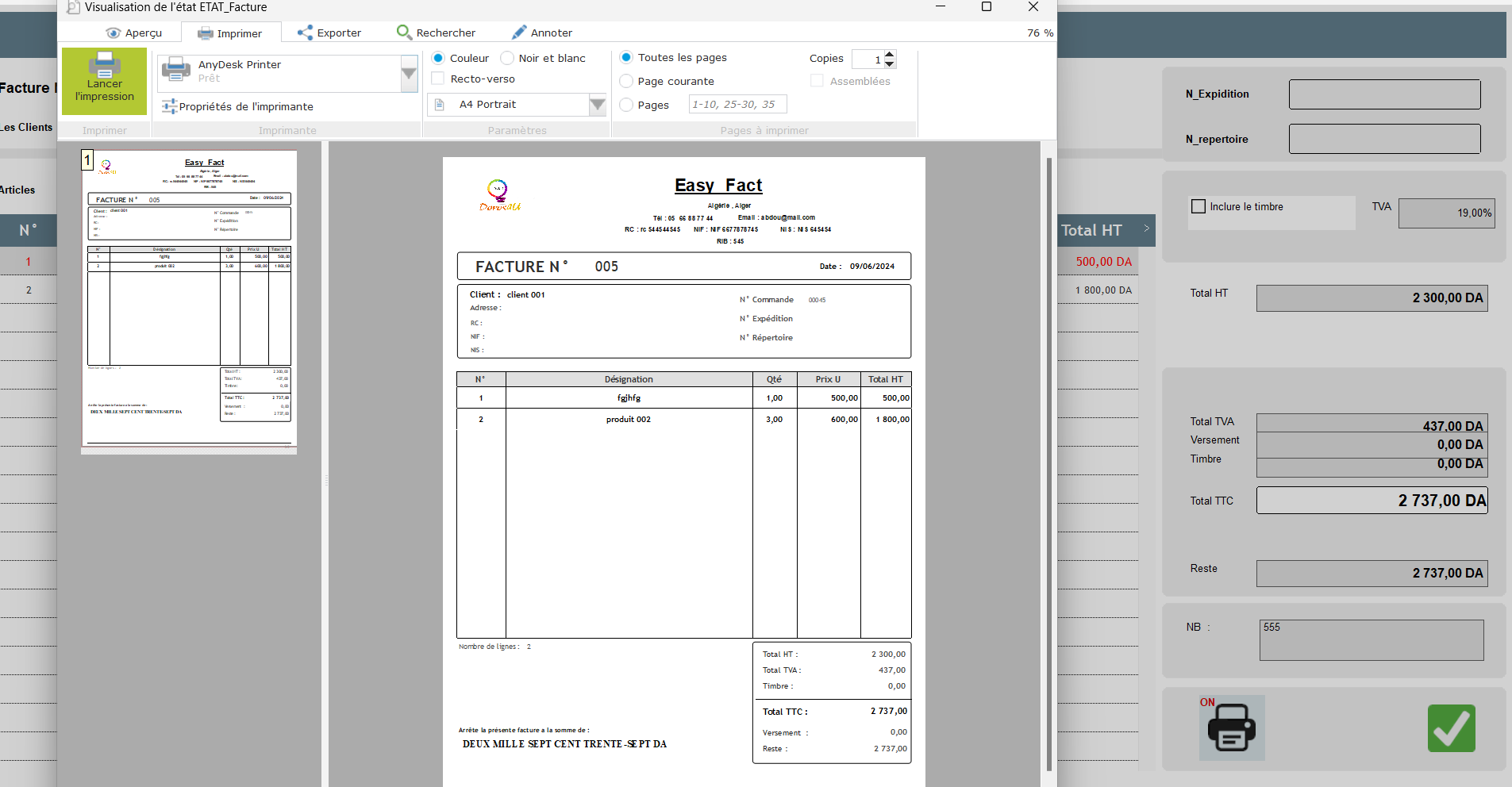 – **Création de factures**: Mettez en place une interface permettant de créer des factures en associant des clients et des articles.